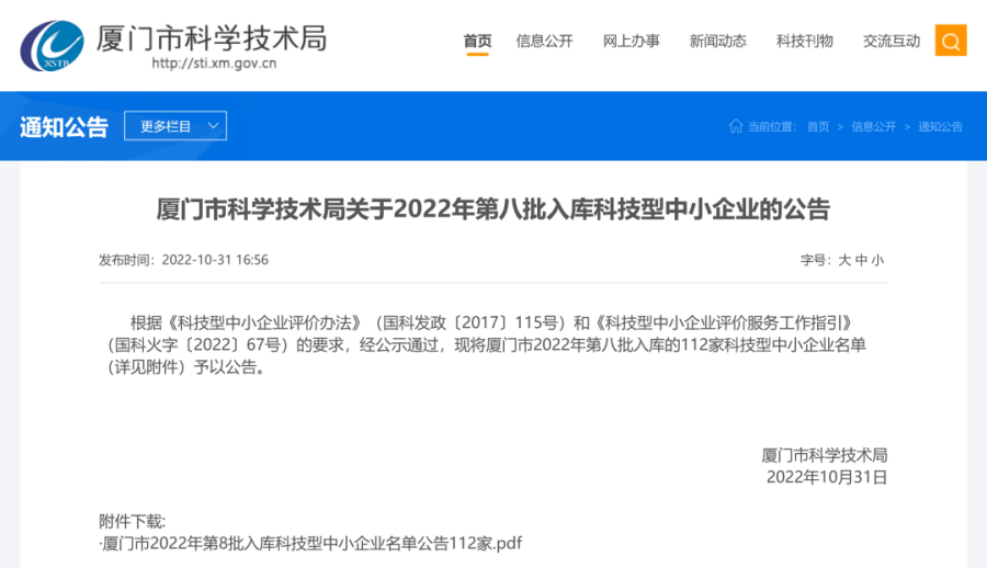 近日,厦门市科学技术局公示了“厦门市2022年第八批入库科技型中小企业”名单。厦门市民数据服务股份有限公司再次上榜。