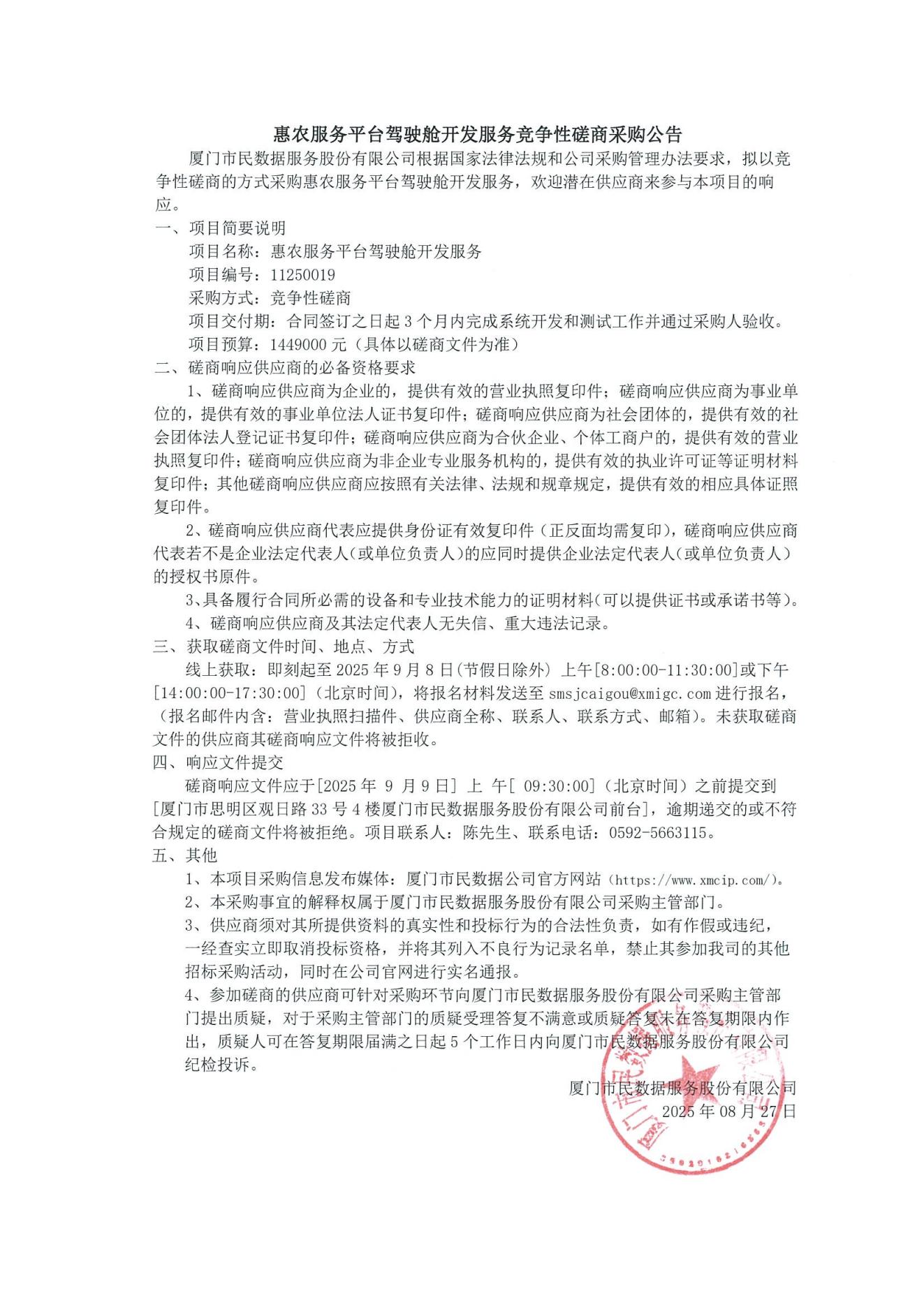 惠农服务平台驾驶舱开发服务竞争性磋商采购公告