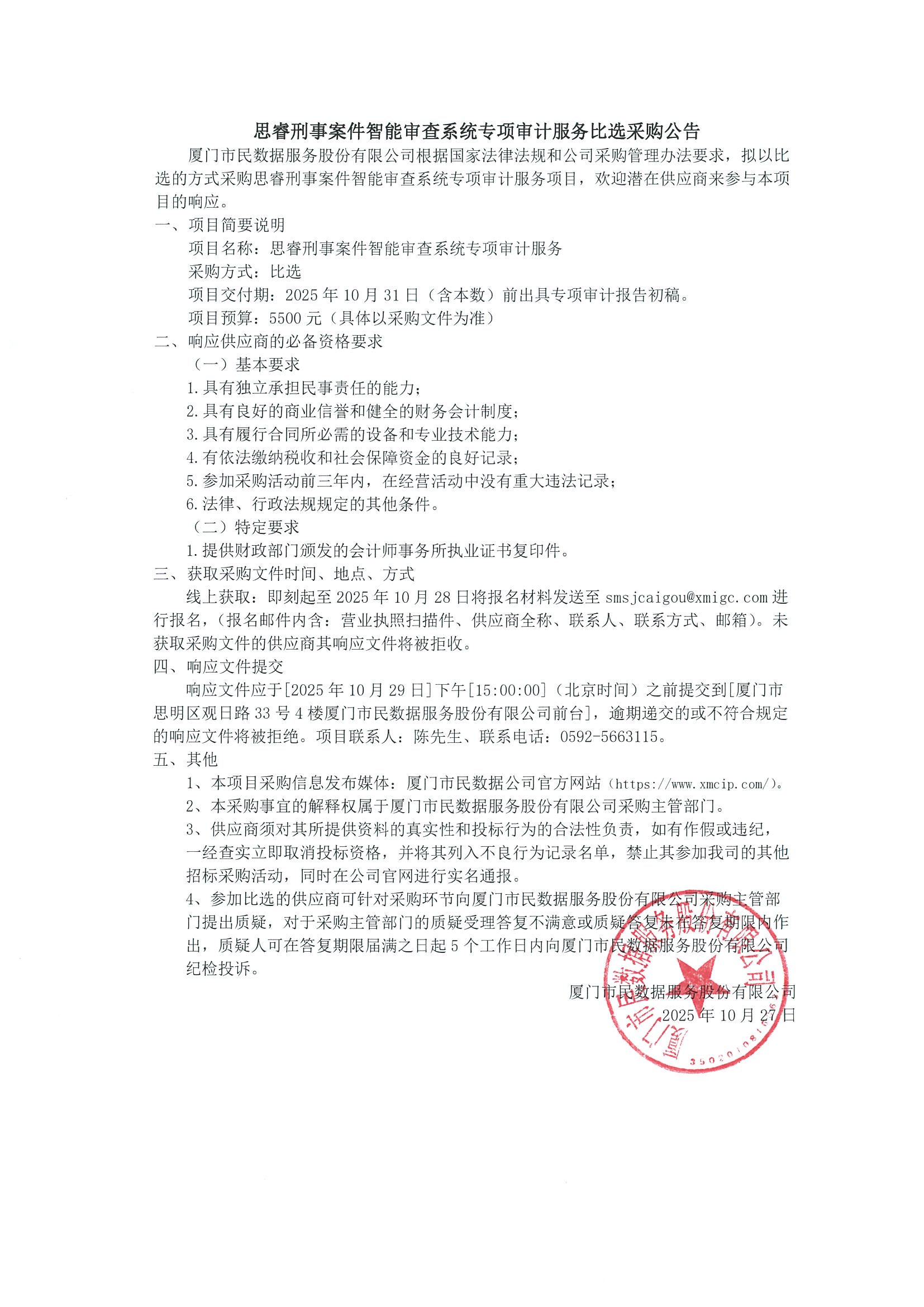 思睿刑事案件智能审查系统专项审计服务比选采购公告